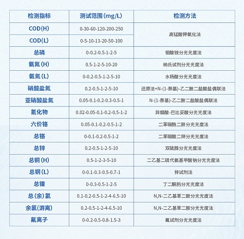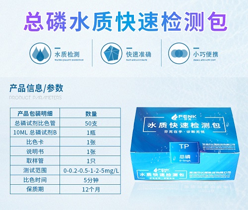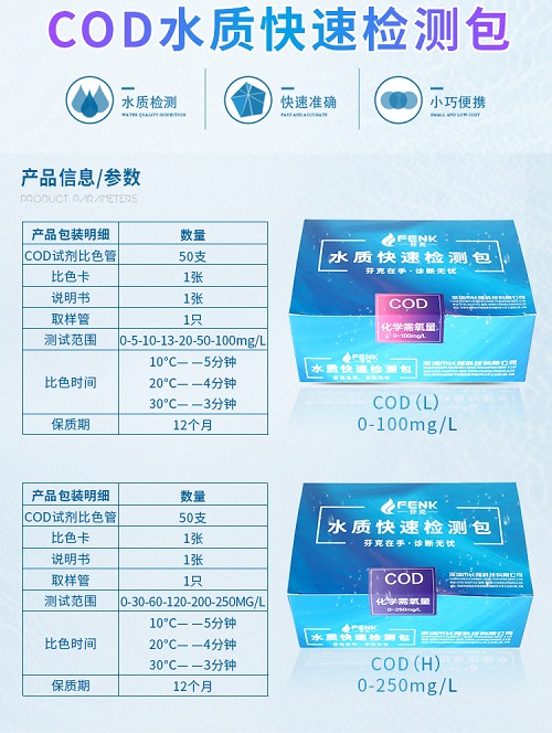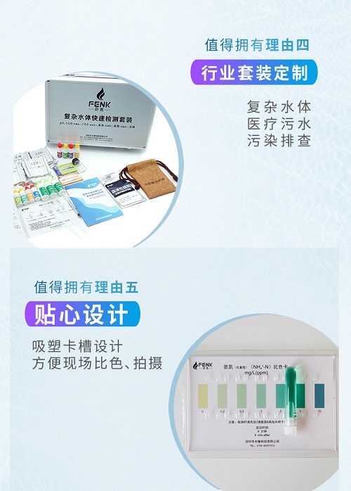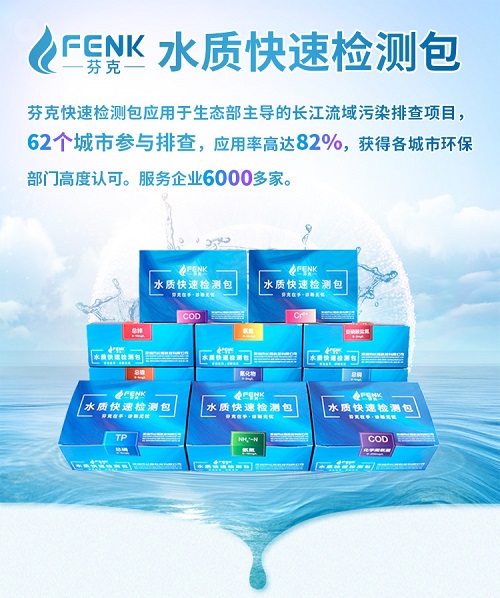 芬克檢測包包含氨氮快速測試包、工業污水COD總磷檢測、總余氯總銅鉻鎳鐵、